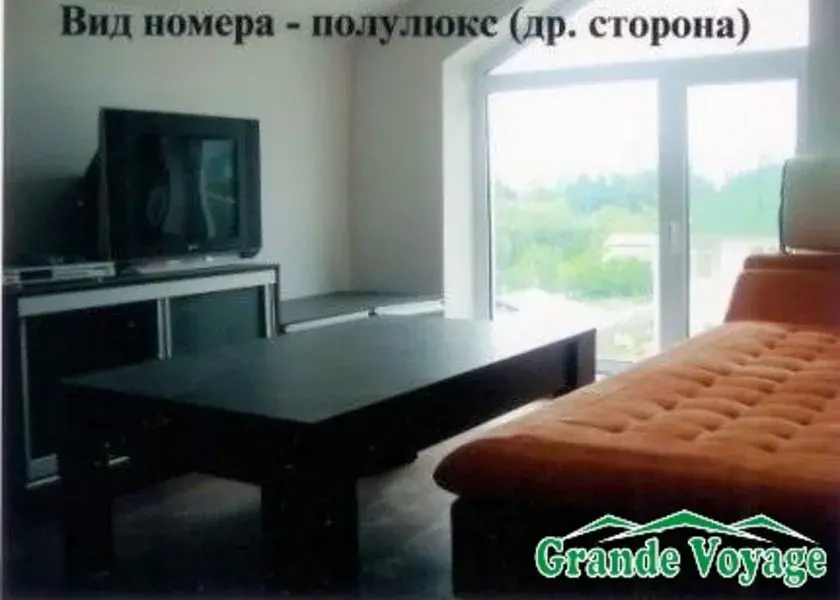 2-х комнатный Люкс — спальня с двуспальной кроватью и гостиная с раздвижным диваном, креслом и пуфиком, с/у, душ, спутниковое ТВ, сейф.